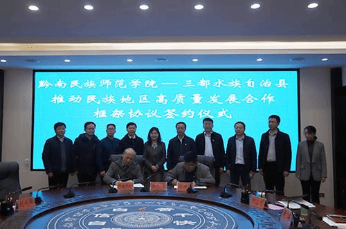 黔南民族师范学院与三都县的合作由来已久,基础深厚。特别是2019年8月,学校同黔南州教育局与三都水族自治县人民政府签订了三方协议——《领办易地扶贫搬迁安置点学校合作协议》。协议签订以来,学校共选派7名骨干教师挂任领办学校教学副校长,选派407名优秀硕士研究生和本科生到8所领办学校和其他对口帮扶学校顶岗实习,实现人才培养与服务地方基础教育事业双提升,“U-G-S”协同育人的“黔南模式”取得了实实在在的新成效,得到国家教育部、省教育厅的充分肯定。